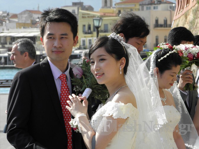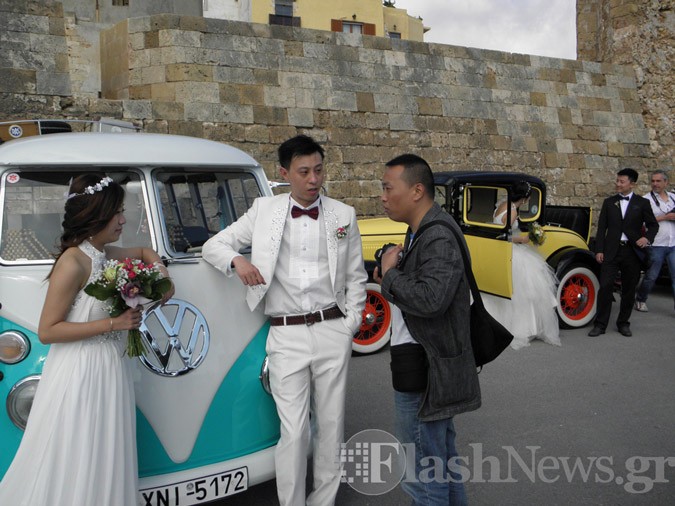 Chania: The Chinese women in their wedding dresses in the Venetian Harbour