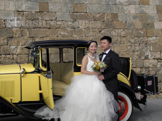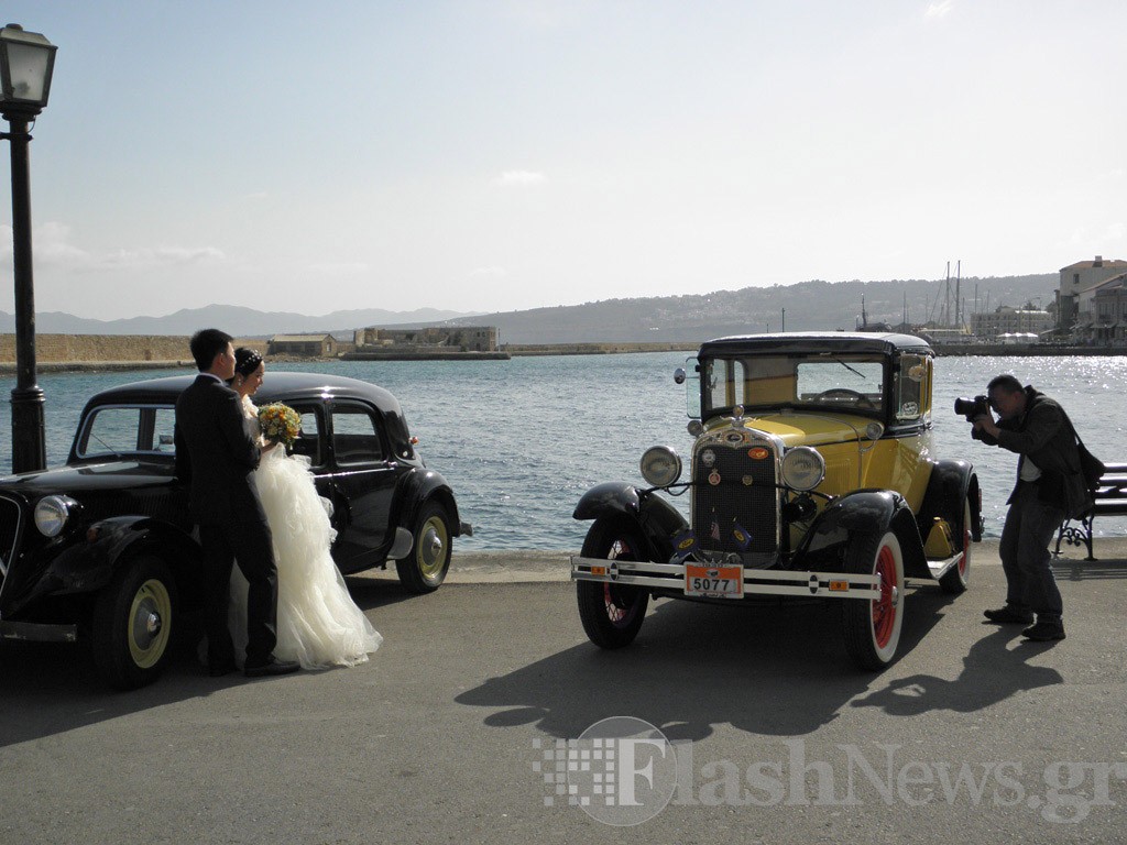 Beautiful antique cars of the Club of old cars owners in Crete were parked in front of the fortress in which the couples were photographed under the guidance of the photographers.