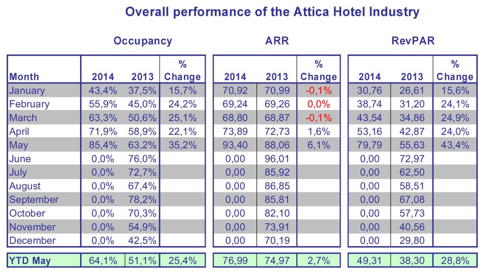 Mr. Vassilikos noted that although there is a slight recovery in occupancy, the Greek capital still lags behind the European average in regards to bookings and prices. Hotel occupancy in Athens during the January-May 2014 period reached 64 percent, up from 51 percent in 2013.