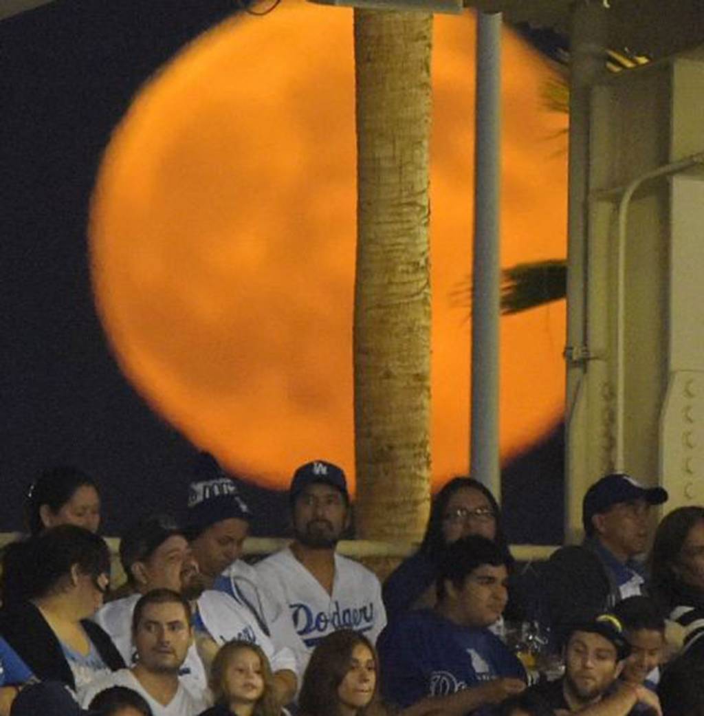 Fans were oblivious to it as it rose behind them during a baseball game between the Los Angeles Dodgers and the San Diego Padres at Dodger Stadium, L.A., California.