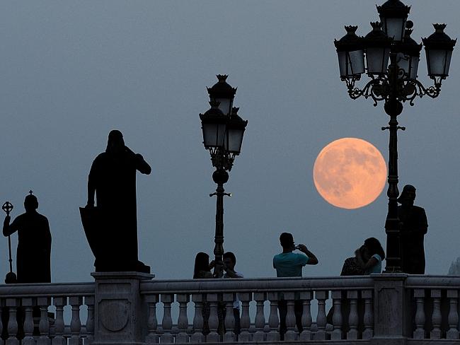 Perhaps the most photographed full moon of the year, people took photos at the Former Yugoslav Republic of Macedonia as they watched a red full moon rise above a bridge over the Vardar River in Skopje.