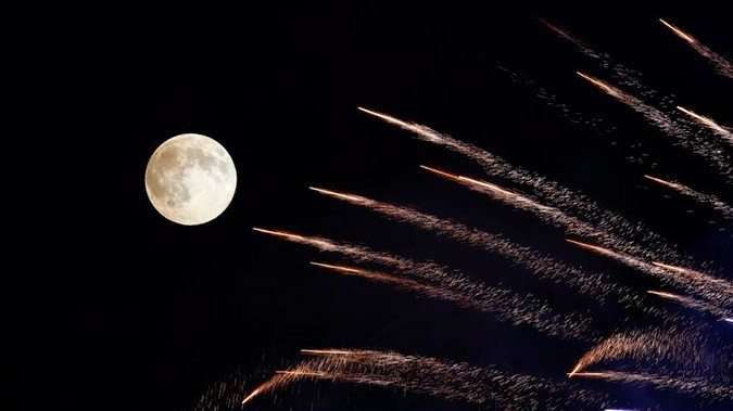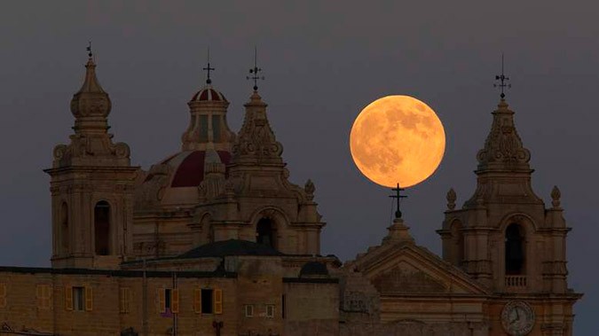 Fireworks accompanied the full moon for a spectacular display in Mosta, Malta.