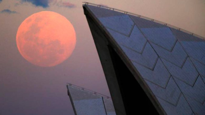 Rising behind Sydney’s Opera House.