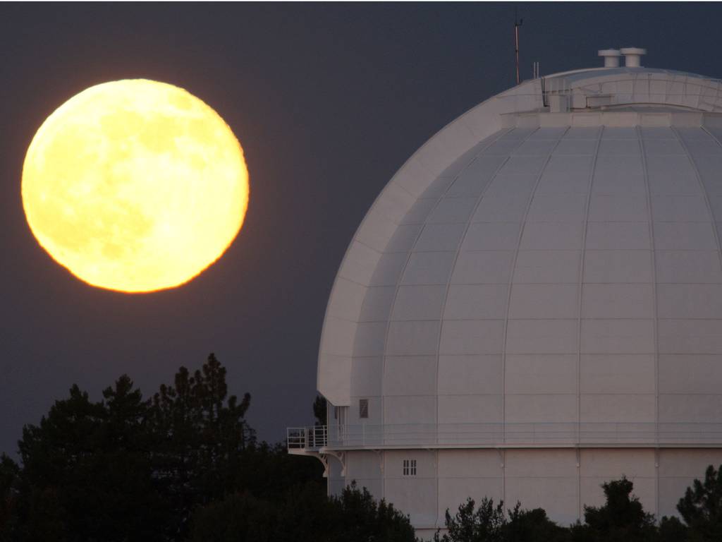 It rose behind the historic Mount Wilson Observatory in the Angeles National Forest, northeast of Los Angeles, California.