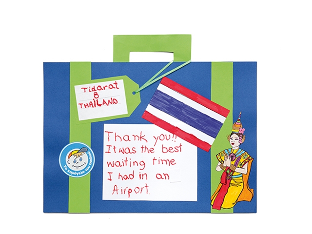 To celebrate the Play Area’s 12th anniversary, the young ambassadors take us on an imaginary “journey” to their own countries through their artwork while visiting Athens International Airport. The luggage – made with carefully chosen materials and combining words and pictures – were offered to the airport by young travelers before their journey back home; leaving us beautiful mementos and ensuring they will visit Greece again soon.