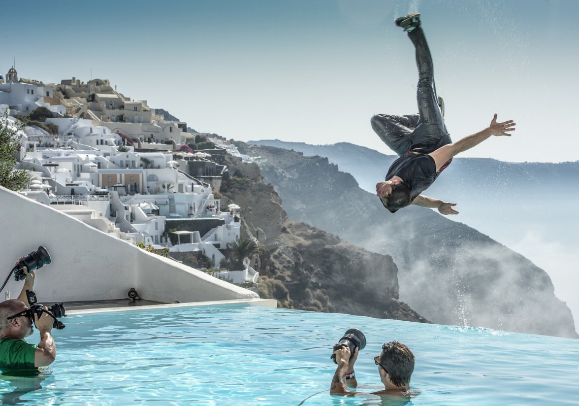 Red Bull energy drink has been organising the ‘Red Bull Art of Motion’ free-running competition since 2011 in the most beautiful locations around the world. One the most captivating and difficult courses is that on the island of Santorini. The competitors have to execute their run on top of the picturesque white houses to the majestic backdrop of the volcanic island.