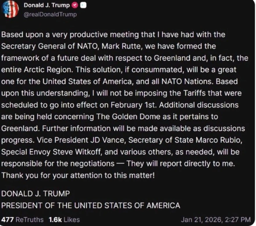 — The White House (@WhiteHouse) January 22, 2026
