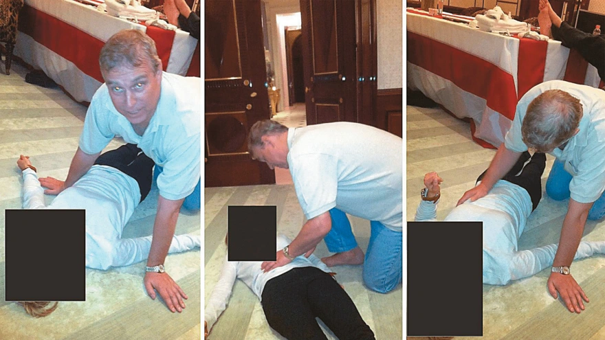 The files include photos showing the former prince and brother of King Charles in an intimate pose over a woman who is fully clothed and unidentified. In two images he appears touching her stomach and in one looking directly at the camera. There is no accompanying context as to when or where the photos were taken.