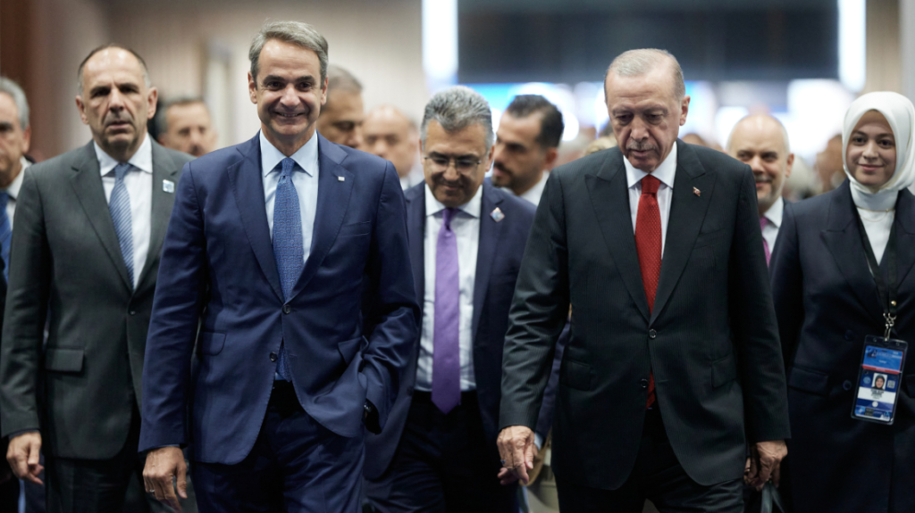 1. What is an initial assessment of the meeting between Recep Tayyip Erdogan and Kyriakos Mitsotakis?