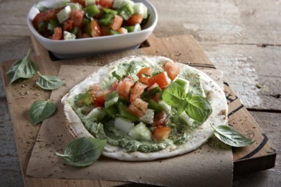 Crispy pittas served with a dip made of feta cheese and ouzo