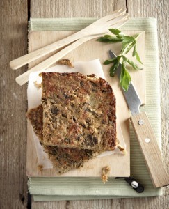 Tart with lentils, mushrooms, cheese and herbs