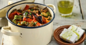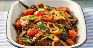 A delicious summer dish with the distinctive, sweet flavor of the eggplant.