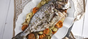Breams baked with vegetables and herbs