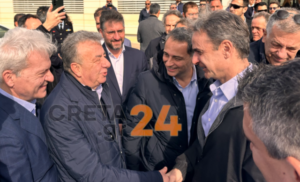 Kyriakos Mitsotakis at the construction site of Kastelli airport