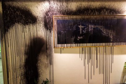 A group of ten members threw bottles of paint at the building in the morning of Monday