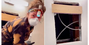Samantha Hartsoe was trying to find source of cold air in bathroom and made discovery that brought to mind horror film Candyman