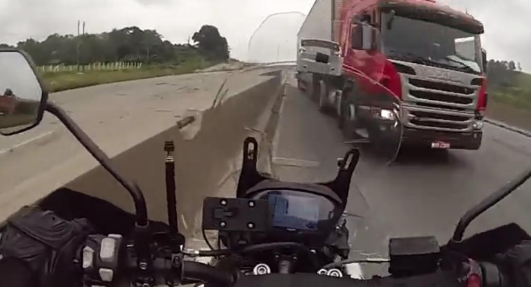 Shocking video shows biker riding opposite the traffic to escape robbers