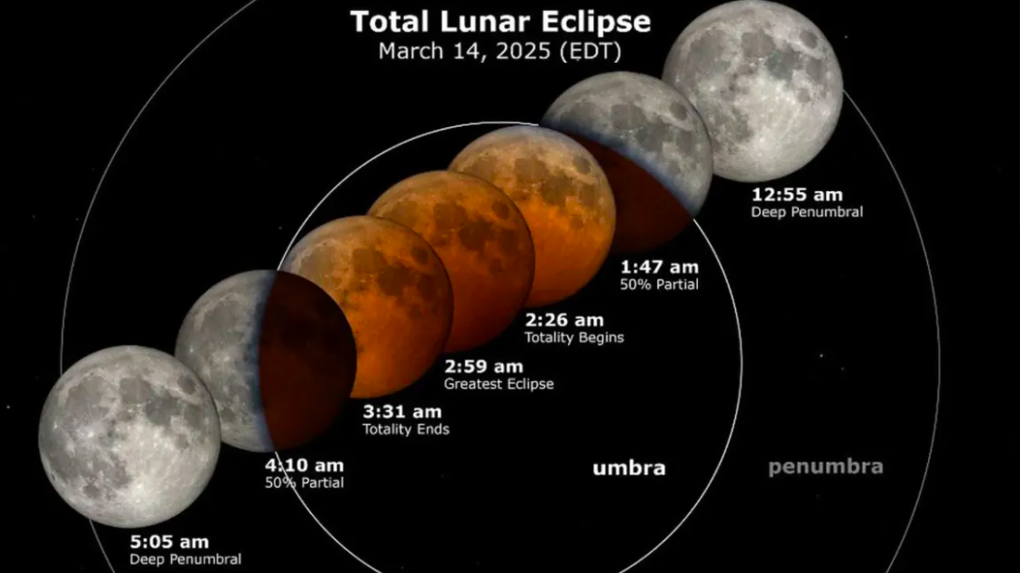 The first total lunar eclipse since 2022 is happening today and is visible from areas of the USA. During the phenomenon, the moon passes into the Earth's shadow, creating a stunning spectacle