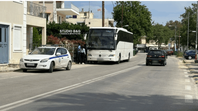 The KTEL bus encountered a car blocking its path at the height of Mylos and used its horn to get it to move away from the spot. The passenger in the car then attacked and injured the bus driver
