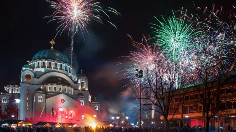 Emblematic buildings around the world in the Greek national colors of Blue & White