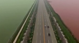 Lake in China coloured half pink, half green! (video)