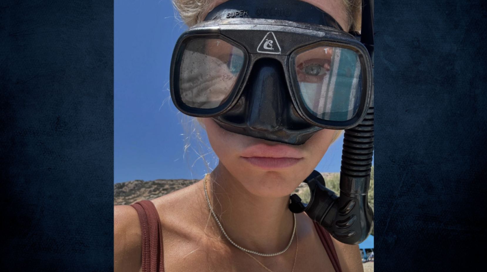 Doukissa Nomikou: Wearing a mask and snorkel in her latest selfie