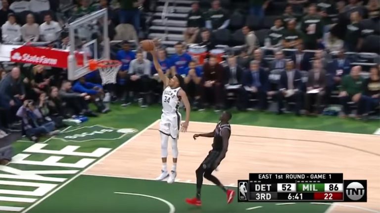 Giannis Antetokounmpo’s “freakish” dunk from the free-throw line! (video)