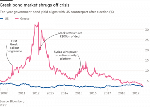 Greek bond yields dip even lower than US Treasuries