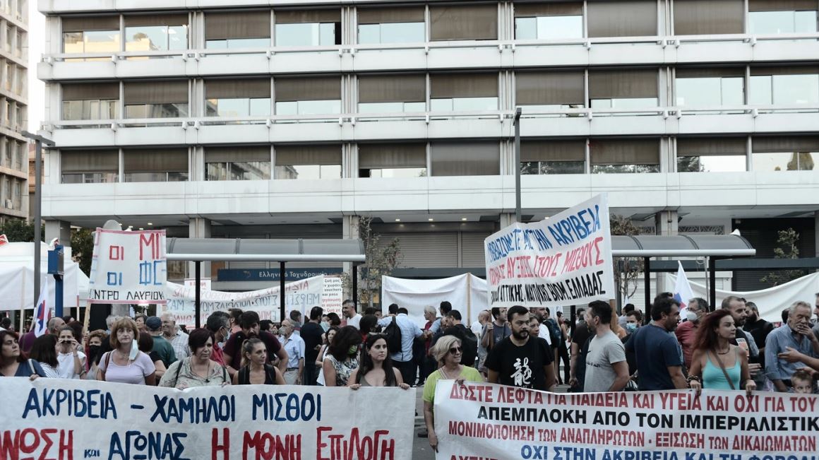 The protesters gathered in front of the Finance Ministry