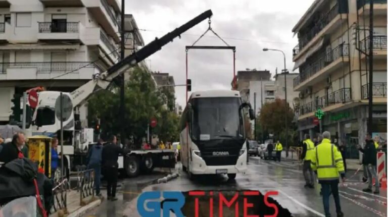 Huge hole in road swallowed bus in Thessaloniki (videos-photos)