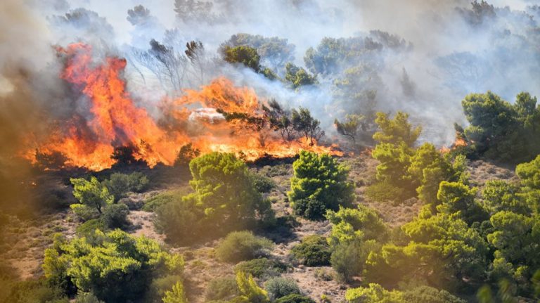 Fire now in Hymettus hill in Athens