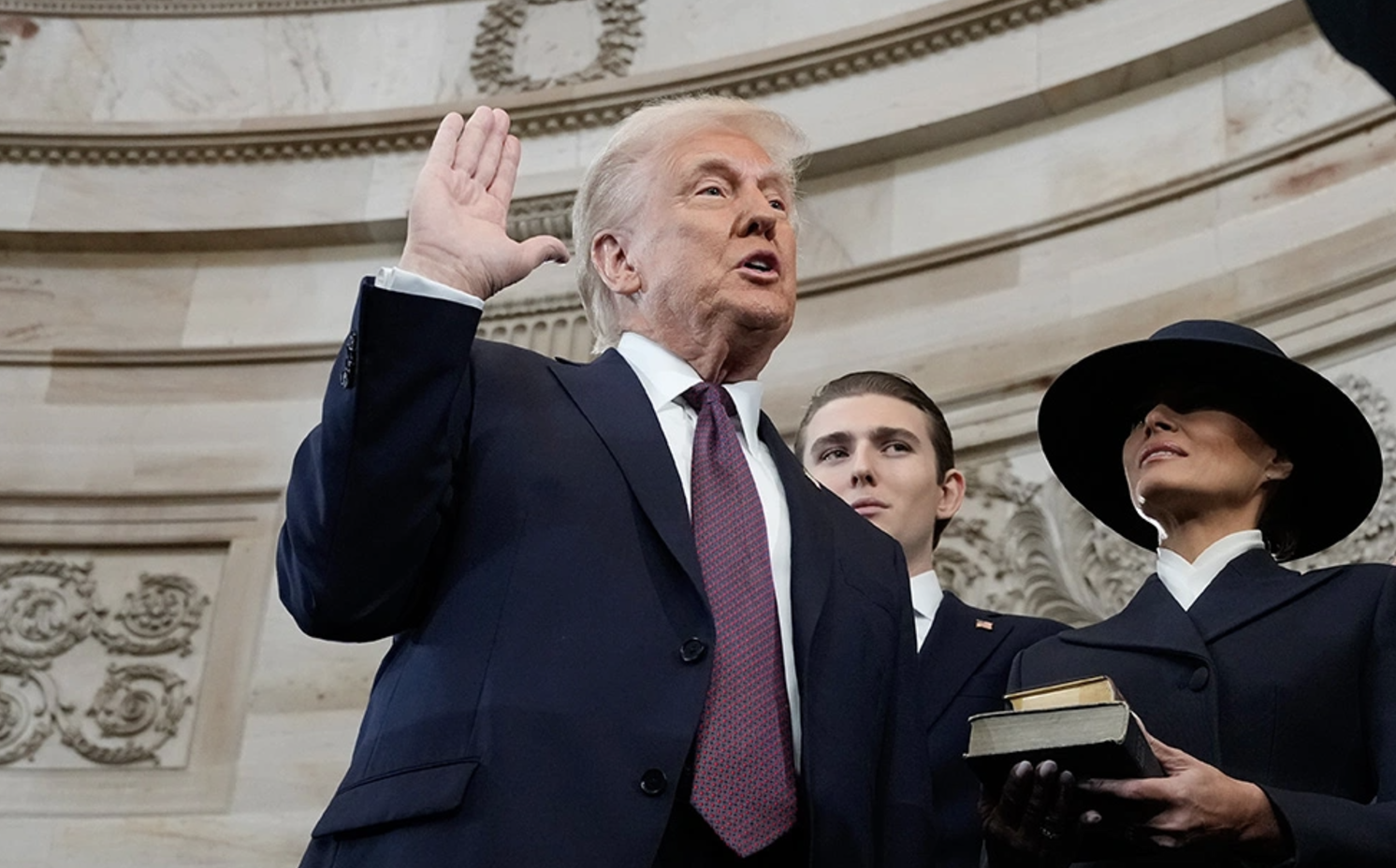 Donald Trump, Melania Trump and their son, Barron, were welcomed with applause as they entered the Rotunda of the Capitol