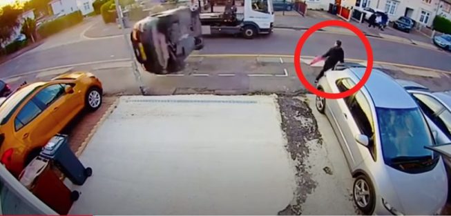Shocking video shows flying car just miss man