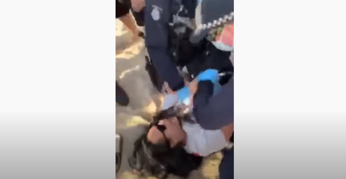 Police push pregnant woman for breaking Covid-19 rules in dramatic Melbourne beach arrest (video)