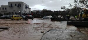 Severe damage from bad weather in Paros: Roads turned into raging torrents, 112 emergency message issued banning vehicle movement (videos)