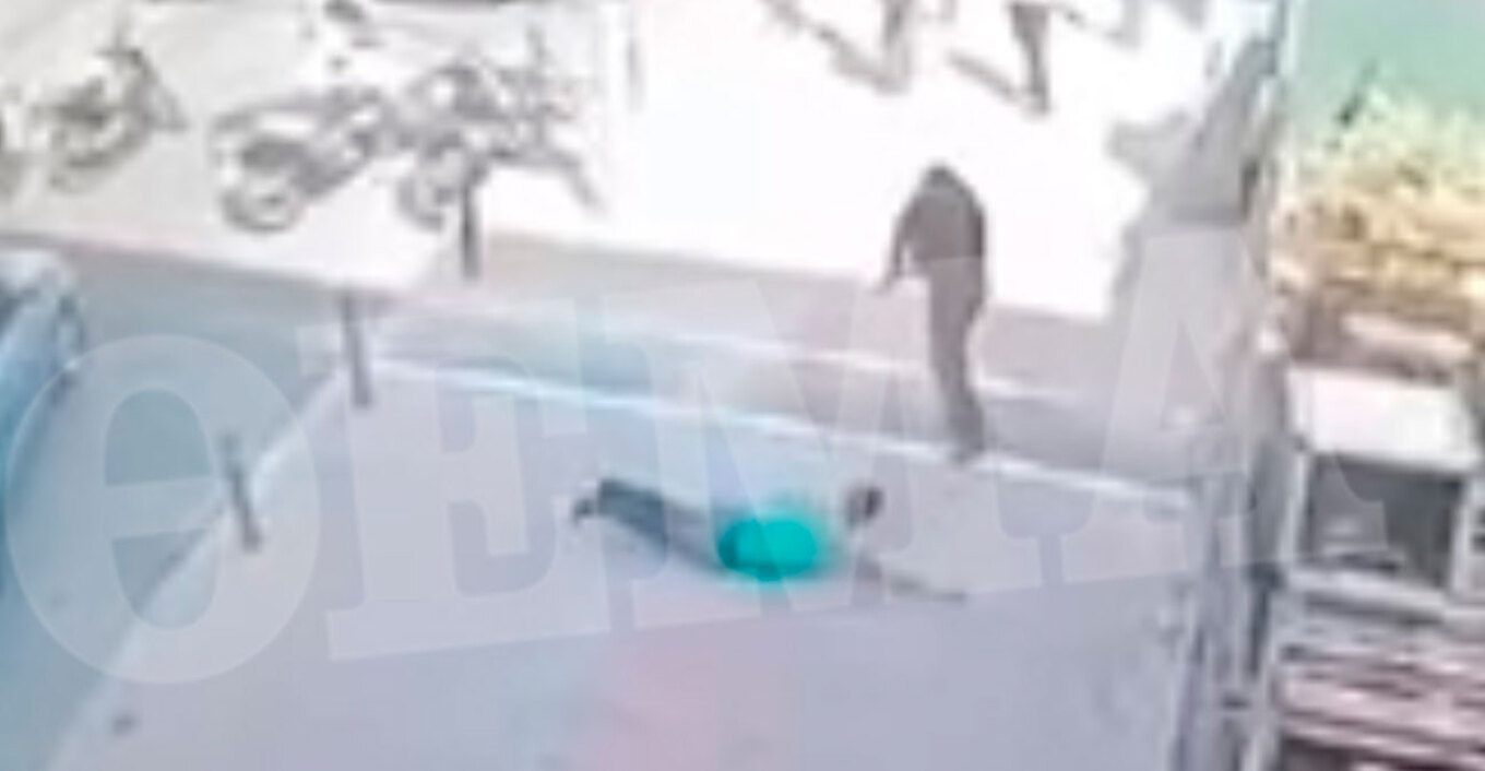 Watch shocking the moment a policeman shoots a robber trying to stab him in Athens (video)