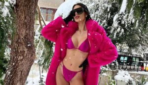 Sexy Greek celebs workout in lingerie on snow-covered roof-top (video)