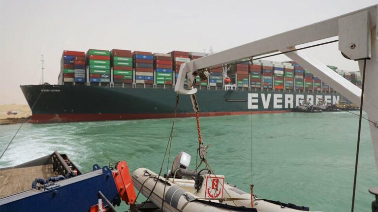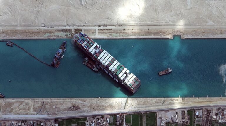 A massive container ship remains wedged in the Suez Canal