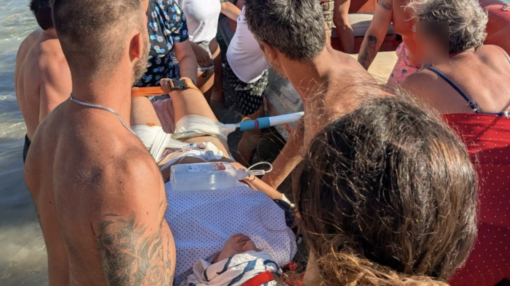 Shocking photos of the injured woman – An 80-year-old man helped transfer her by boat to the island’s helipad, then to Red Cross Hospital