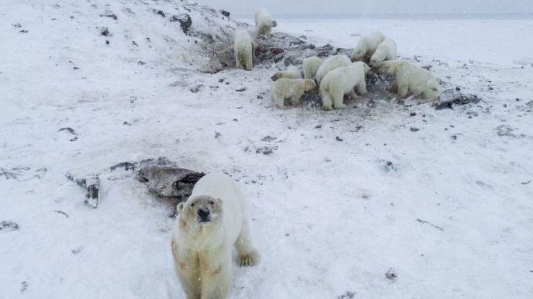 Hungry polar bears invade Russian town for food (video)