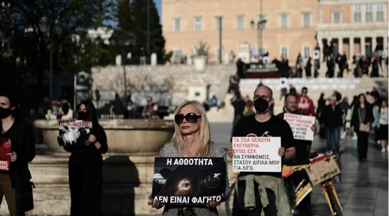 Vegans protest in Athens against Easter spit-roasted lamb tradition (photos)