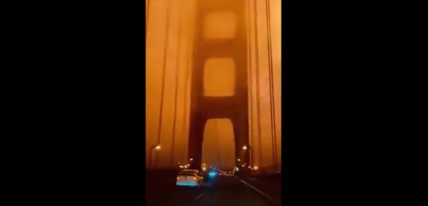 Eerie footage shows iconic Golden Gate Bridge shrouded in orange glow from fires (video)